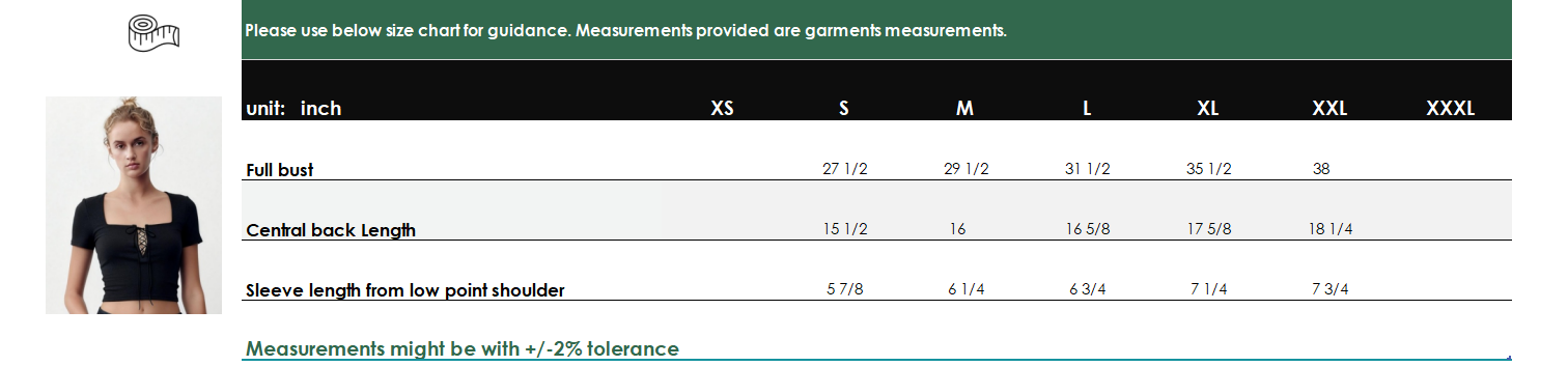 The style features a modern square neckline and short fitted sleeves for a balanced and contemporary look. A functional lace-up detail at the center front adds visual interest and allows for slight adjustability, creating a flattering and feminine focal point. The cropped length is designed to pair easily with high-waist denim, skirts and tailored bottoms.