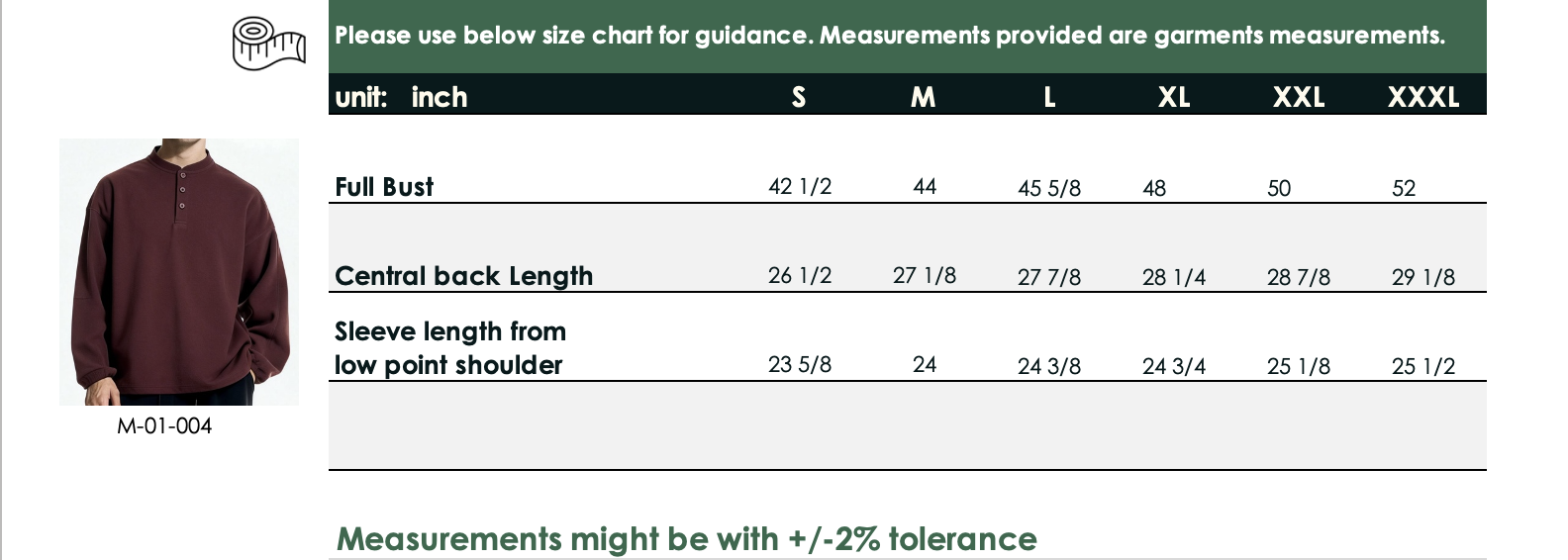 tabla de tallas